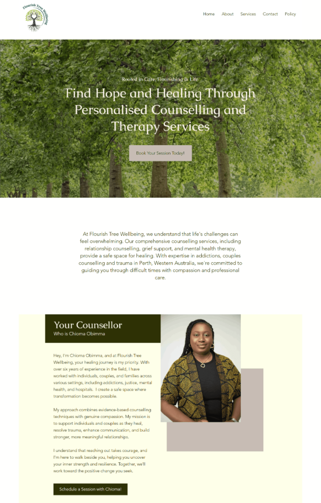 Chioma Obimma is an accredited mental health social worker dedicated to supporting individuals through their mental health challenges. We built a therapy website that reflects her warmth, credibility, and commitment — reaching clients across Western Australia.