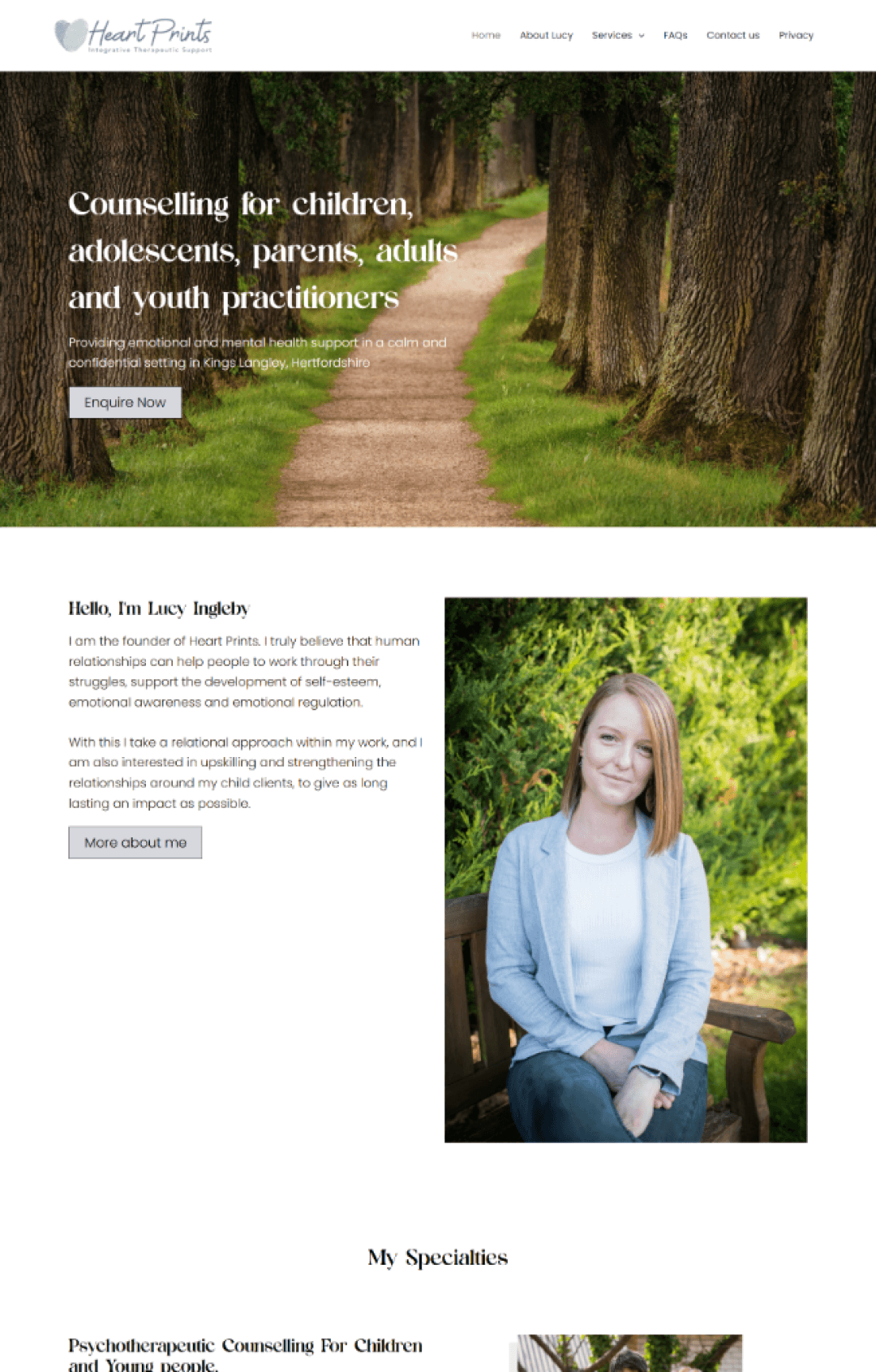 Lucy Ingleby is an integrative therapist (MBACP) specialising in work with children, young people, and parents. We built a counseling website that builds immediate trust with families searching for specialist support for their children.