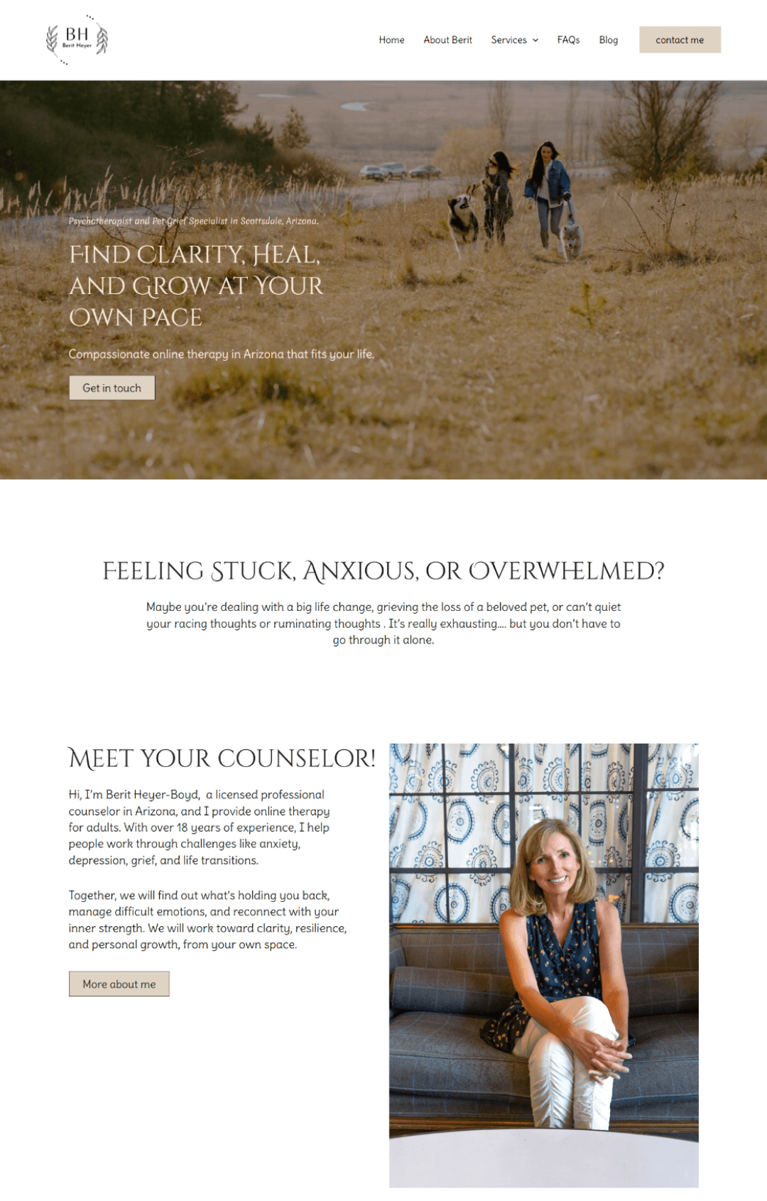 Berit is a psychotherapist and pet grief specialist — one of the most unique niches in mental health. We built a private practice website that positions her expertise authentically and connects her with clients navigating one of life's most overlooked losses.