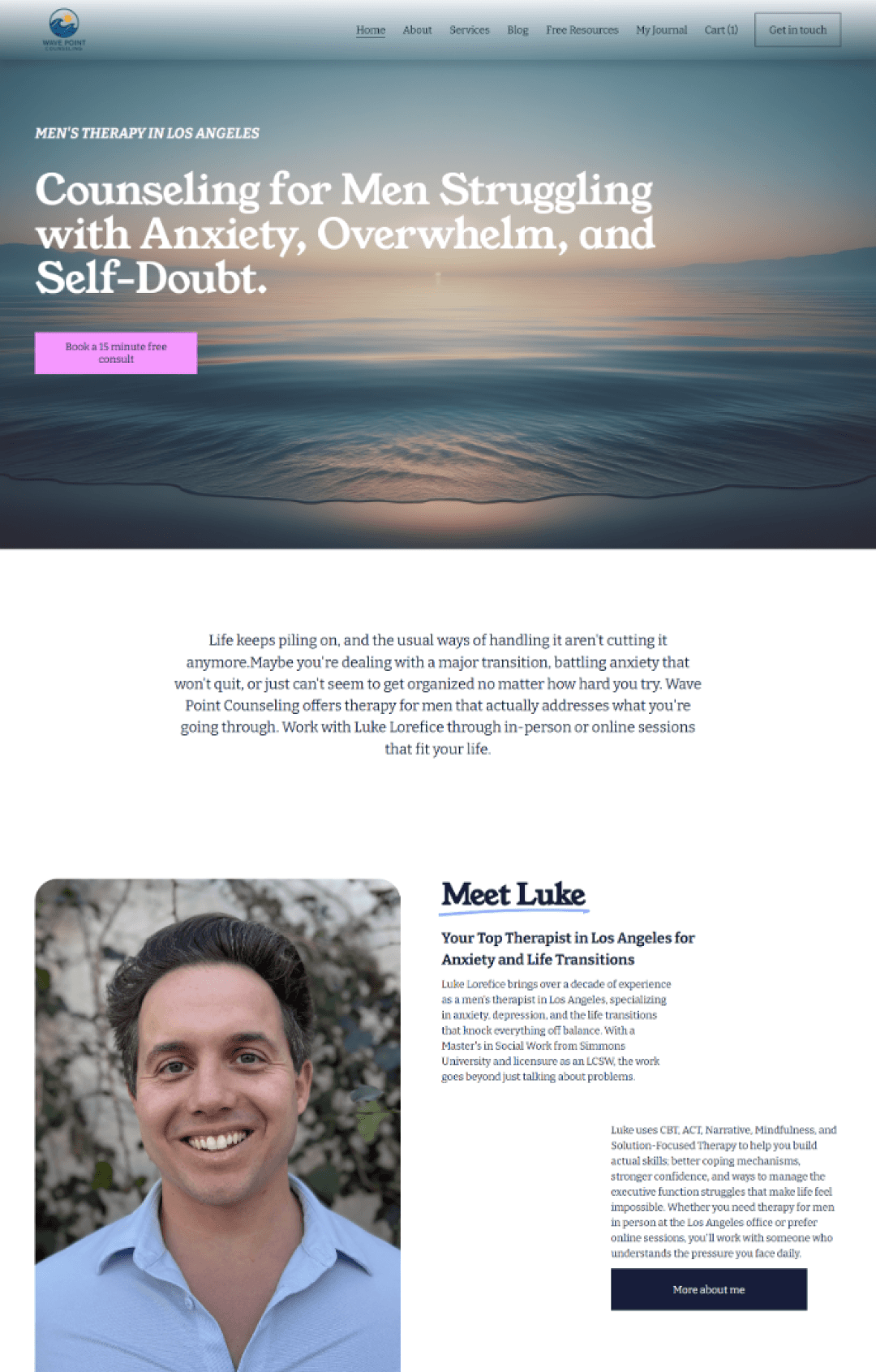 Luke works with men struggling with anxiety, overwhelm, and self-doubt. We built a therapist website designed specifically to speak to men — an underserved audience in the therapy space — and make it easy for them to take that first step.
