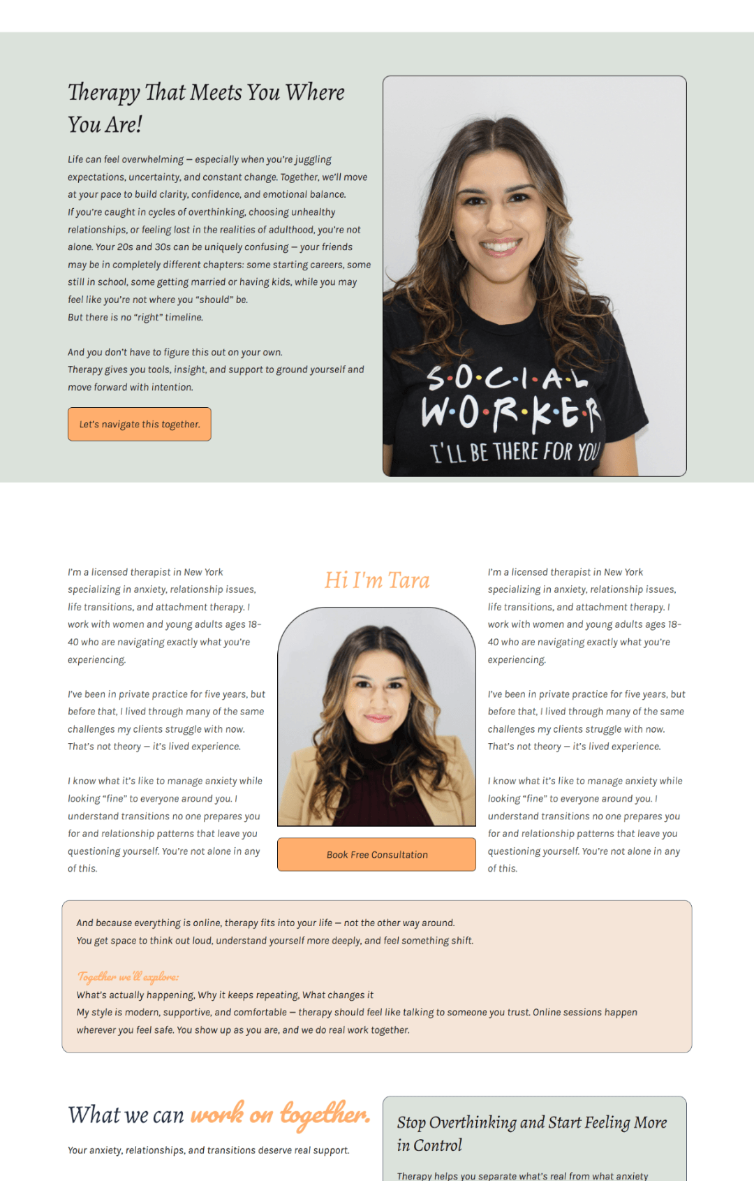 Tara specializes in anxiety, life transitions, relationship issues, and self-esteem. We built a conversational, approachable therapy website that reflects her style and connects with clients at exactly the right moment in their journey.